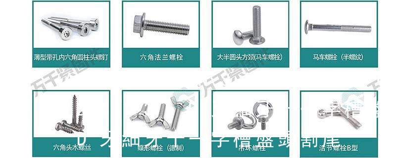 B-1: Sheet Metal Tapping Screw. (鐵板牙自攻螺絲)B-2: Plastic Tapping Screw. ( 塑料用, 自攻螺絲)C: Wooden Screw : 木工螺絲 D: Drywall Screw : 水泥墻螺絲 三. 常見螺絲材質(zhì):a.Low Carbon Steel :低碳鋼