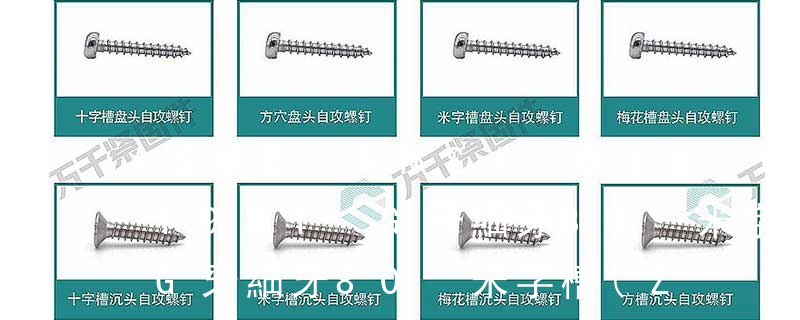 1、Flat:平頭 (鎖入后,頂部與工作件齊平)2、Oval:色拉頭、O頭、半沉頭 3、Round:圓頭 4、Pan:圓扁頭 5、Truss:大圓扁頭 6、Hex:六角頭 A-5:Finish Code/外觀處理。公制自攻螺絲 :于品名后方直接標示 Tapp J-日規(guī)(JIS)D-歐規(guī)(DIN)A-美規(guī)(AISI)G-國標(GB)B-英規(guī)(BSW)S-國際標準(ISO)T-特殊標準 規(guī)格標準——GB標準十字槽盤頭自攻螺釘 GB 845-85 十字槽沉頭自攻螺釘 GB 846-85 十字槽半沉頭自攻螺釘 GB 847-85 開槽盤頭自攻