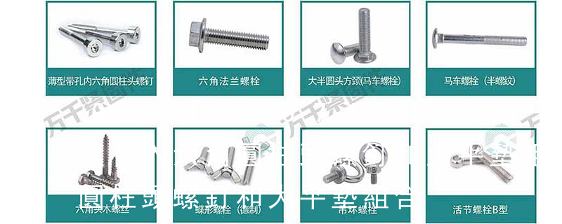 內六角圓柱頭螺釘配1個墊圈。內六角組合螺釘是由一個內六角圓柱頭螺釘配一個彈墊再配一個平墊組合搓絲緊固在一起的組合件。 方頭短圓柱錐端緊定螺釘GB/T818-2000 十字槽盤頭螺釘GB/T819.1-2000 十字槽沉頭螺釘 第1部分:鋼4.8級GB/T819.2-2000 十字槽沉頭螺釘 第2部分:鋼4.8、不銹鋼A2-70和有色金屬CU2或CU3GB/T820-2000 十字槽